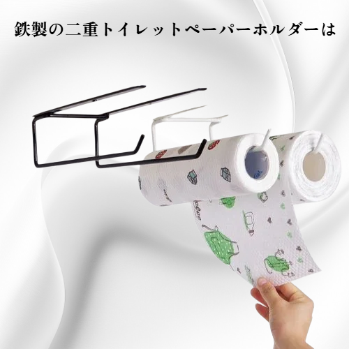 鉄製の二重トイレットペーパーホルダーは、耐久性に優れ、キッチンやトイレでの食器や食品の収納に便利。無穴設計で壁を傷つけず簡単設置可能。